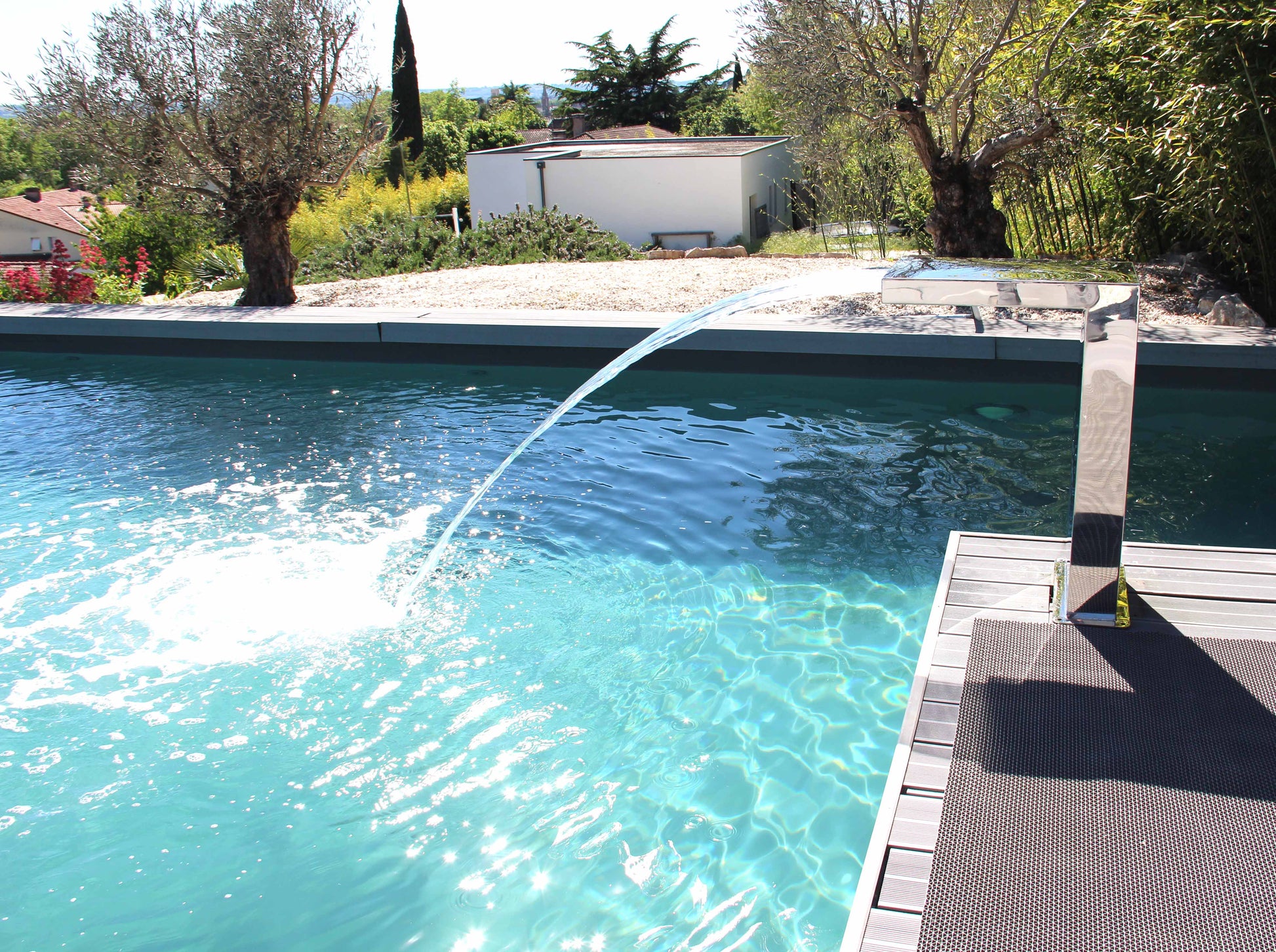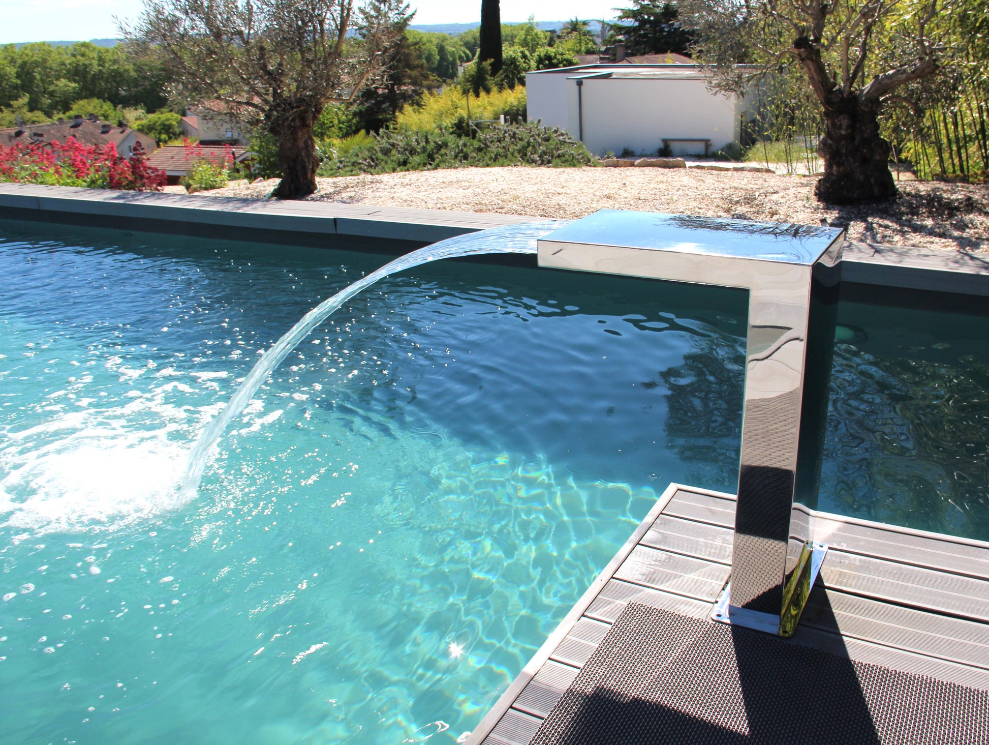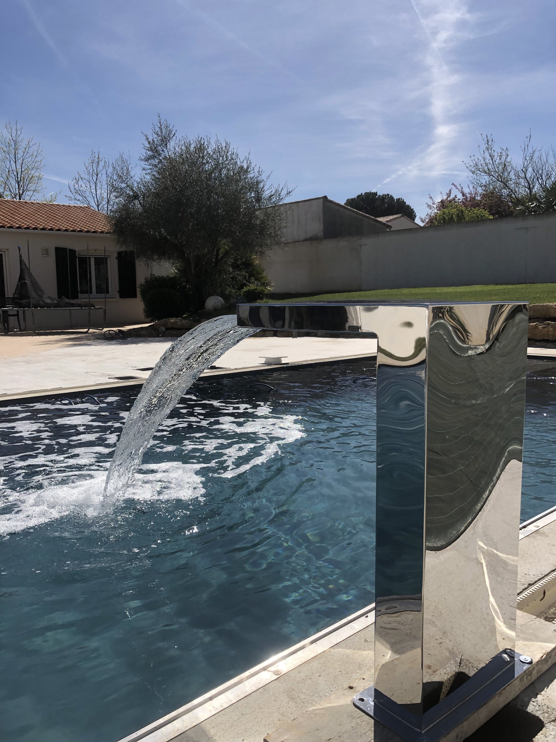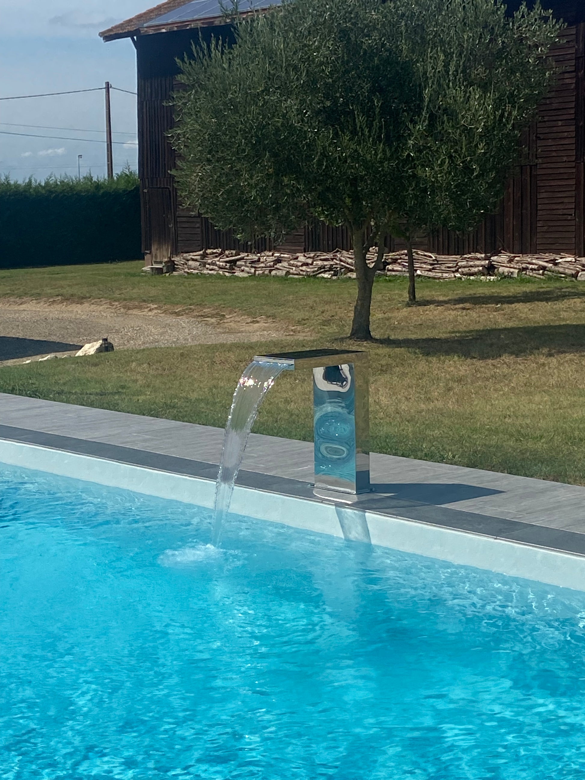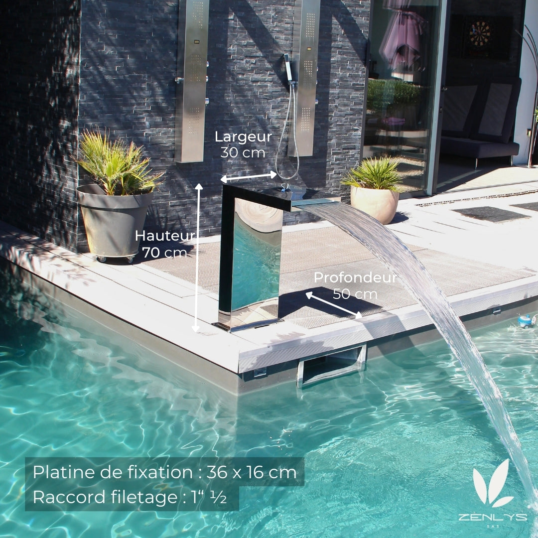 Cette cascade en forme d'équerre apportera une touche élégante à votre bassin ou piscine.
