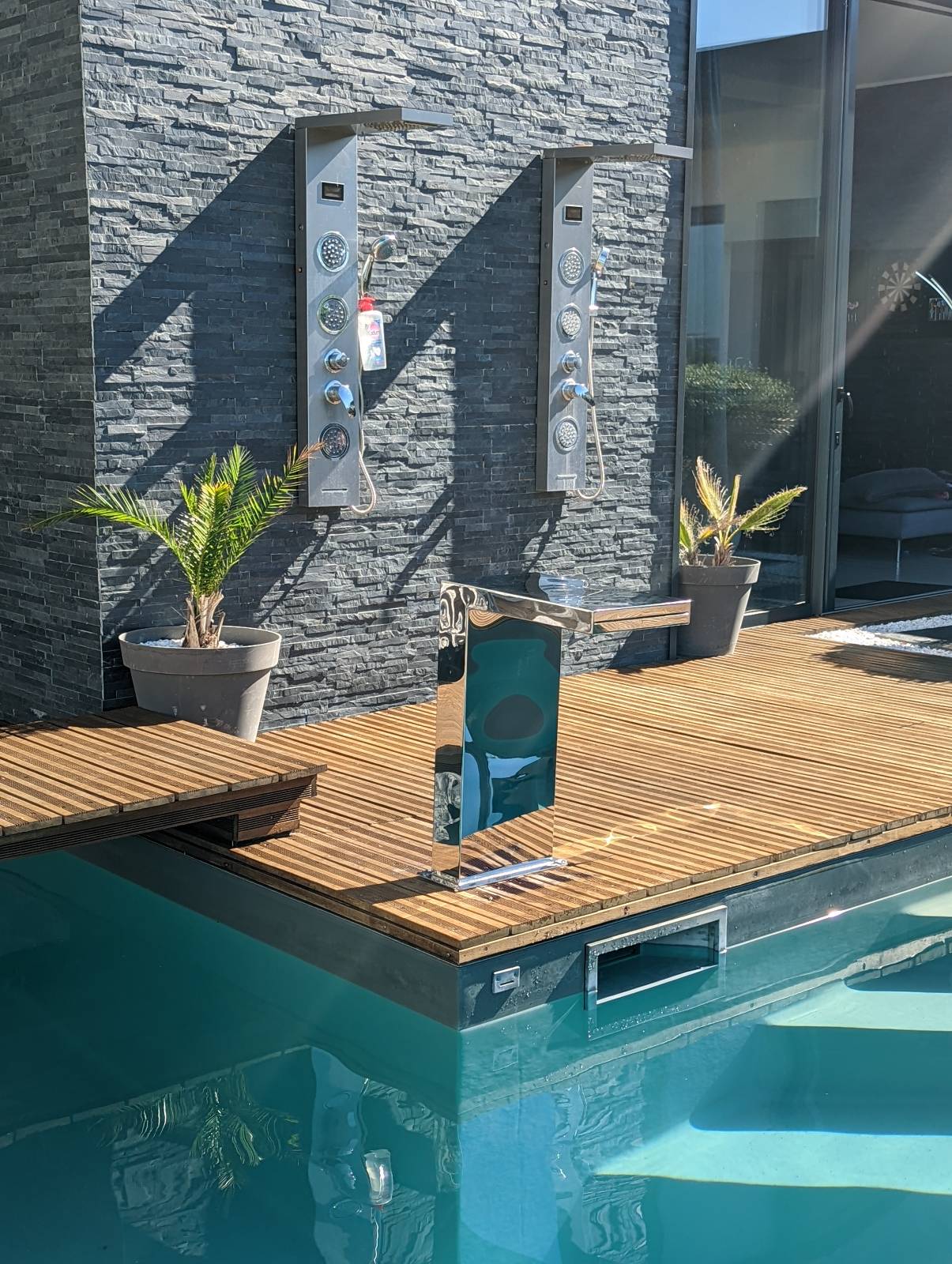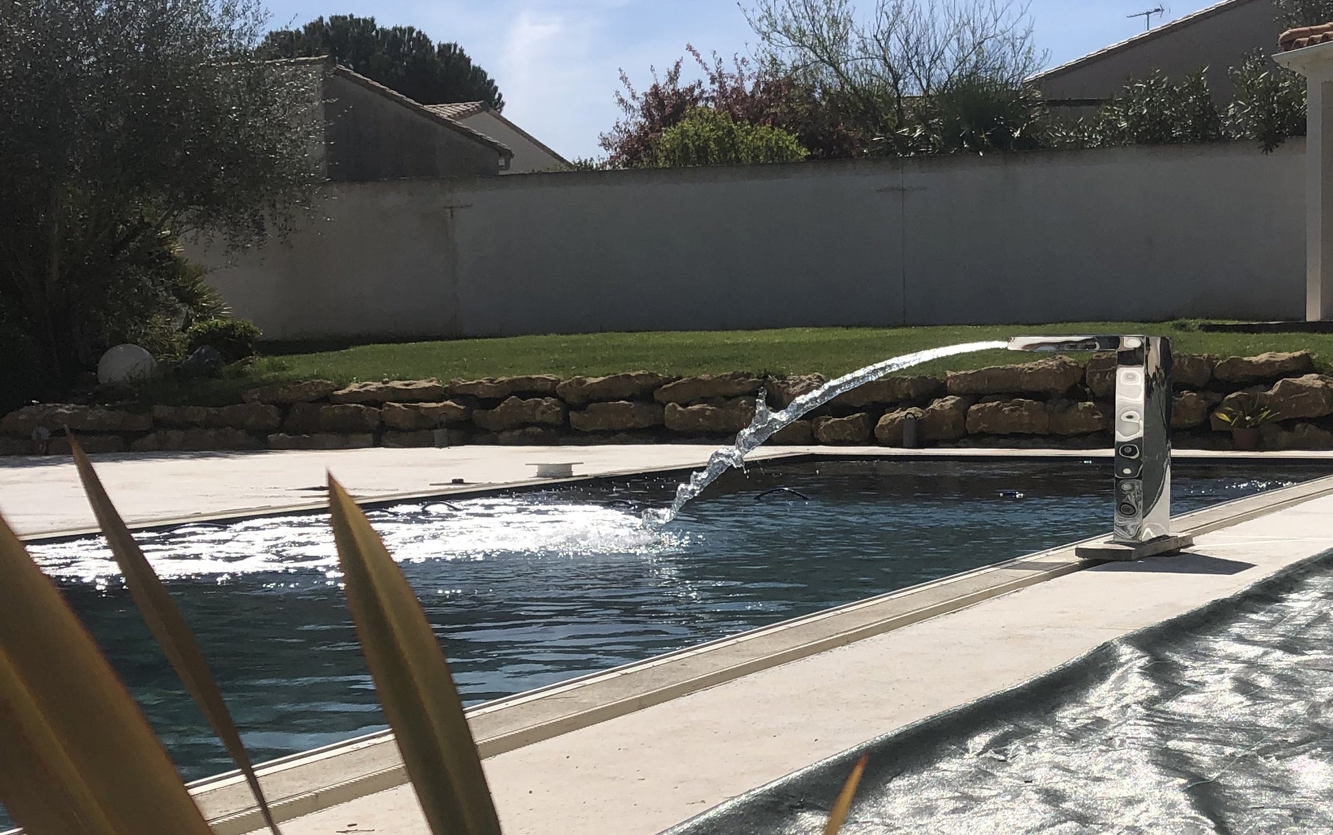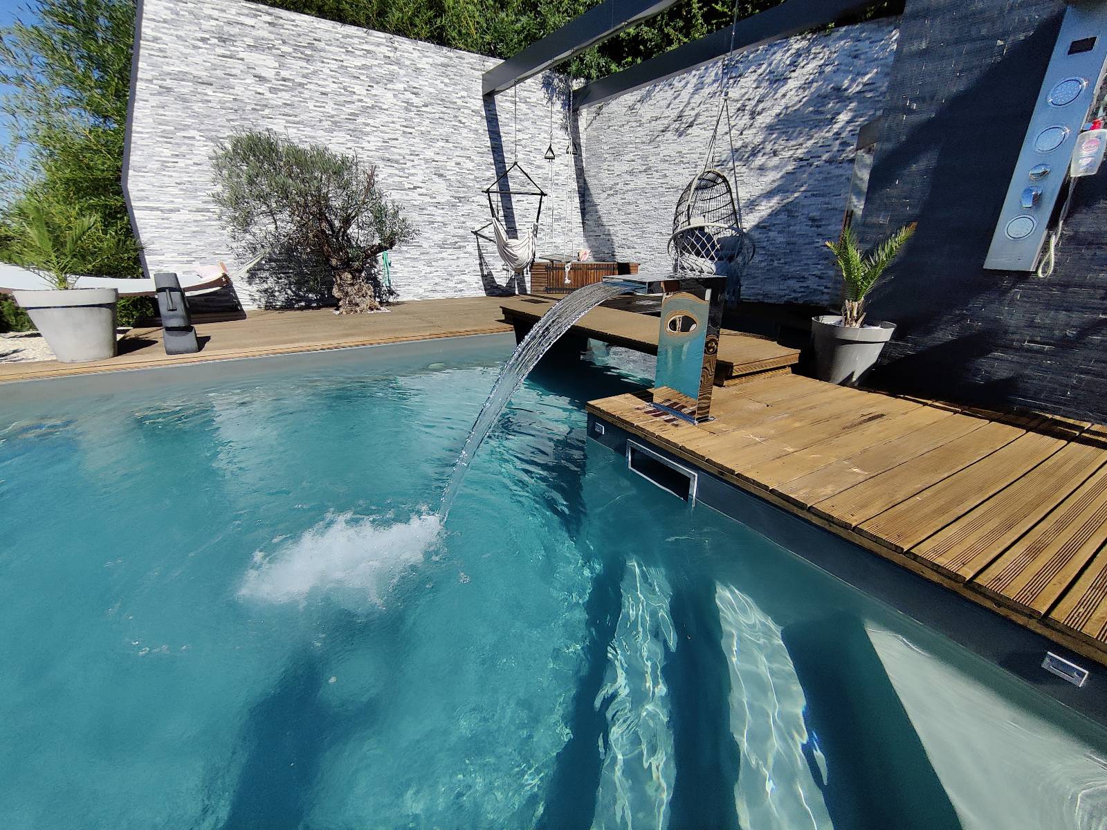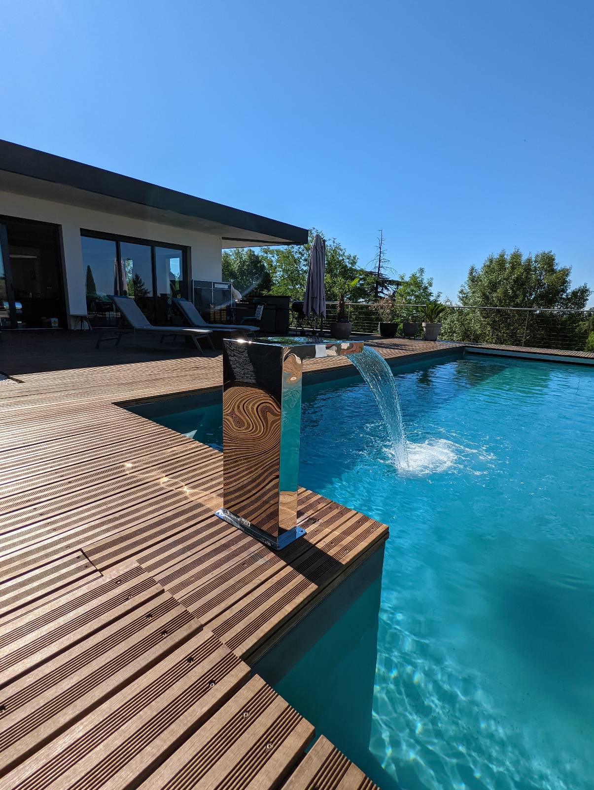 Cette cascade en forme d'équerre apportera une touche élégante à votre bassin ou piscine.
