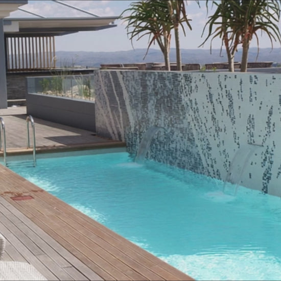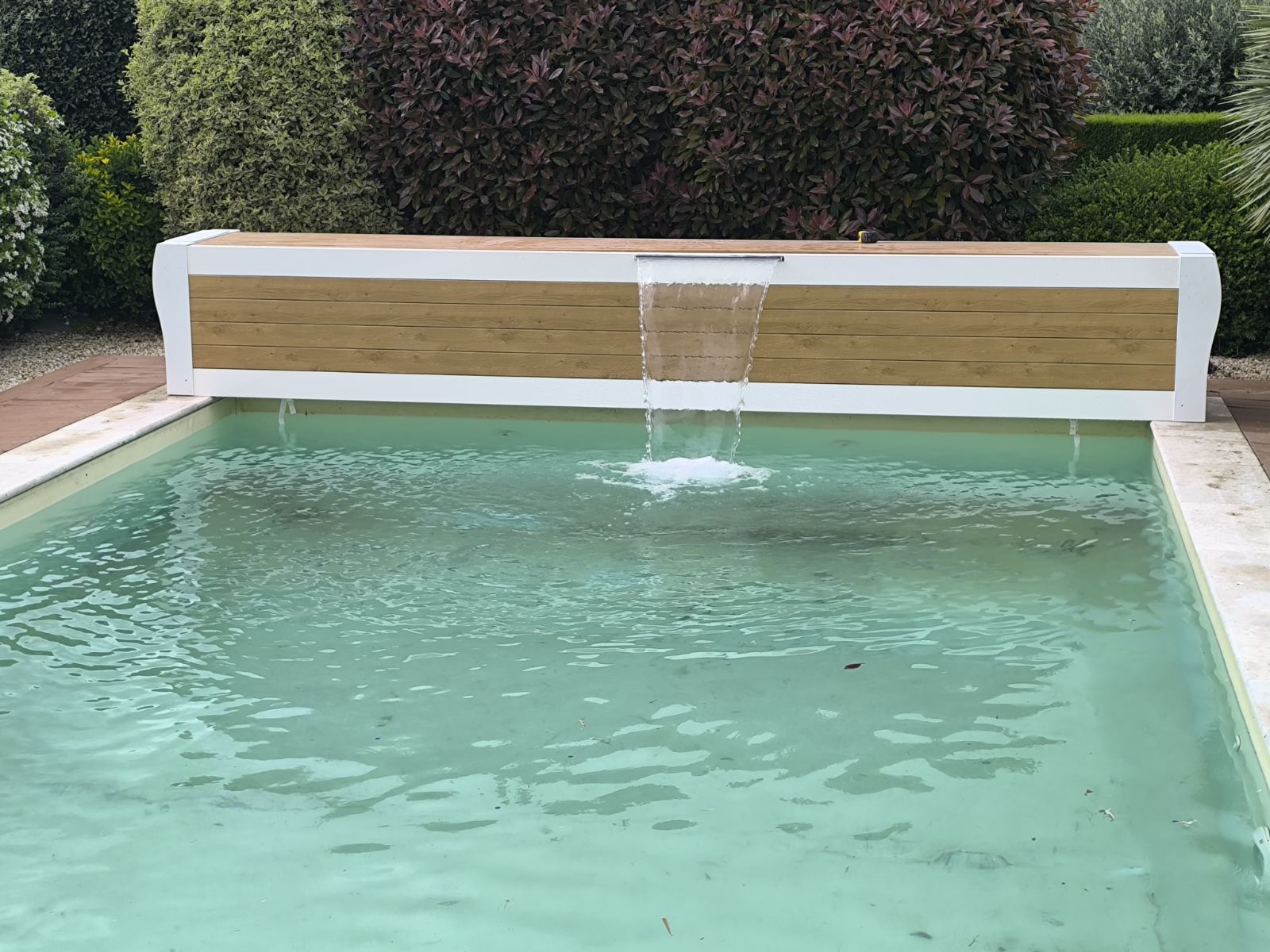 Vous pouvez personnaliser votre chute d'eau dans un habillage béton, carrelé mais également dans une ossature bois ou composite.