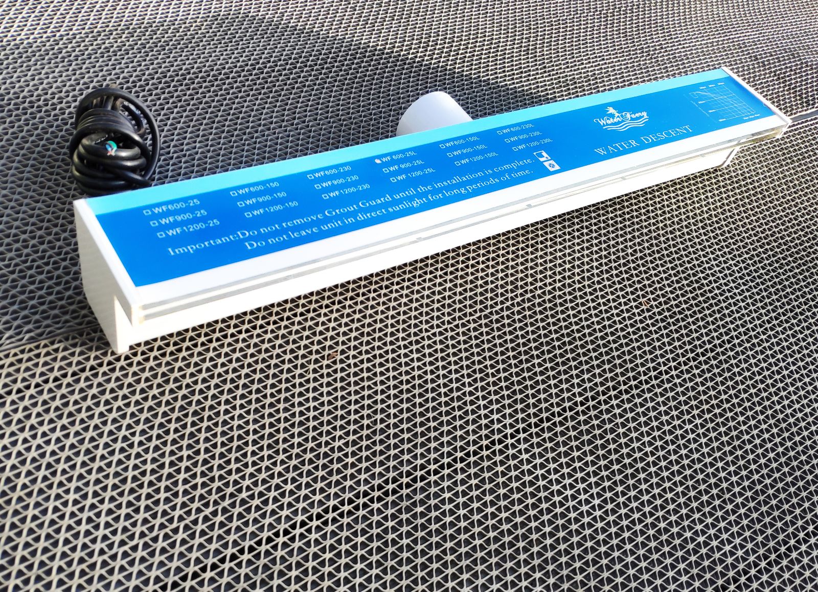 Lame d'eau acrylique encastrée 2,5cm débord / Largeurs 120cm,90cm,60cm ou 30cm / avec ou sans led
